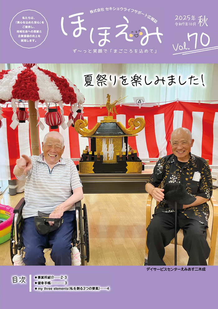広報誌ほほえみでは、季節の行事やご利用者様の笑顔などを掲載しております。是非ご一読ください。
